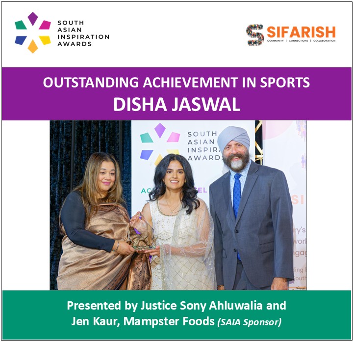 A South Asian female role model in sports, Disha is developing a free youth basketball training program while completing her BSc in Kinesiology at the University of Calgary. Through her dedication, she inspires young athletes and demonstrates how sports can drive personal growth and community engagement.