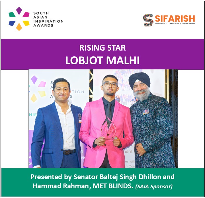 Lobjot is a young entrepreneur and community leader whose ventures and volunteerism reflect his passion for culture, inclusion, and youth empowerment. In October 2023, he launched the clothing brand RACKZROUNDS, inspired by Punjabi music and heritage, with multiple sold-out releases. He also owns a vehicle rim repair and customization business, starting his entrepreneurial journey during the pandemic with custom masks.